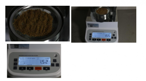 測試樣品1:用實驗勺提取4克藥品,置于不銹鋼托盤中,用實驗勺將藥品平鋪平均,溫度設置 105℃用儀器進行加熱,約5分鐘后檢測結束,檢測數(shù)據(jù)顯示1.52%;
