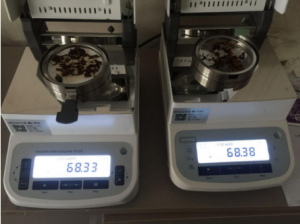 用實驗藥勺提取7.1克醬菜,置于不銹鋼托盤中,用實驗藥勺將面粉平鋪均勻,溫度設(shè)置135℃用儀器進(jìn)行加熱,約6分鐘后檢測結(jié)束,檢測數(shù)據(jù)顯示12.77%;為了檢測儀器的精確性,待儀器溫度降至50℃以下時進(jìn)行第二次測試,用實驗勺提取6.8克醬菜,置于不銹鋼托盤中,用實驗藥勺將醬菜平鋪均勻,溫度設(shè)置150℃用儀器進(jìn)行加熱,約7分鐘后檢測結(jié)束,檢測數(shù)據(jù)顯示12.74%;?用實驗藥勺提取7克醬菜,置于不銹鋼托盤中,用實驗藥勺將醬菜平鋪均勻,溫度設(shè)置150℃用儀器進(jìn)行加熱,約8分鐘后檢測結(jié)束,檢測數(shù)據(jù)顯示12.73%。實驗結(jié)果所得數(shù)值較為準(zhǔn)確,儀器檢測精度較高。