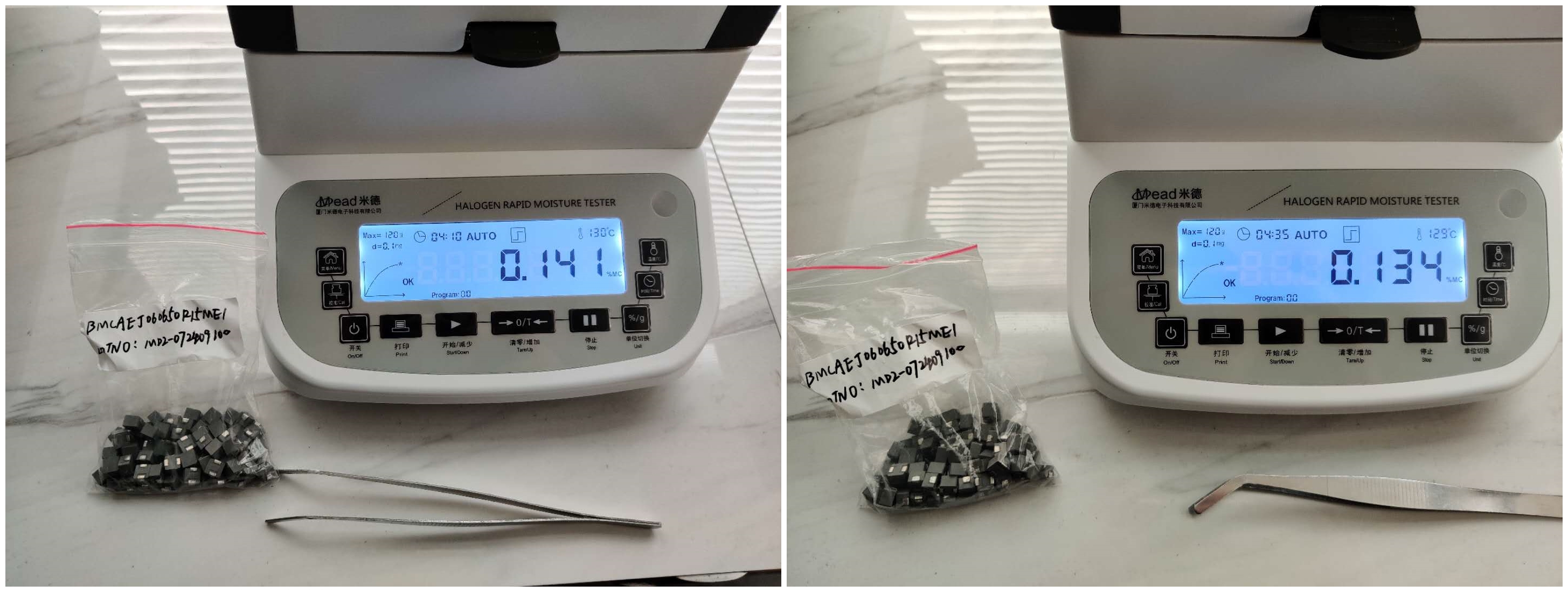 測試儀器:米德QL-720D(稱重精度0.001g,水分解析0.001%)