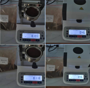 5. 復位儀器,待儀器冷卻至40℃以下后,再取15g左右烘干的顆粒均勻鋪在樣品盤上,重復上述測試步驟;測試結束后得出第二組數(shù)據(jù),顯示樣品的水分含量為0.027%;數(shù)據(jù)基本相同誤差僅為0.003%,表示測試結果可靠,可重復性好。