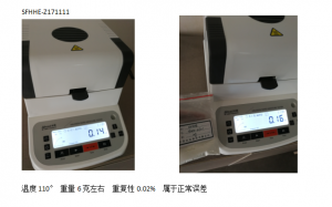 型號(hào) | 溫度(℃) | 樣品克重(g) | 時(shí)間(min) | 檢測(cè)數(shù)據(jù)(%) | 備注 |
